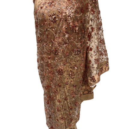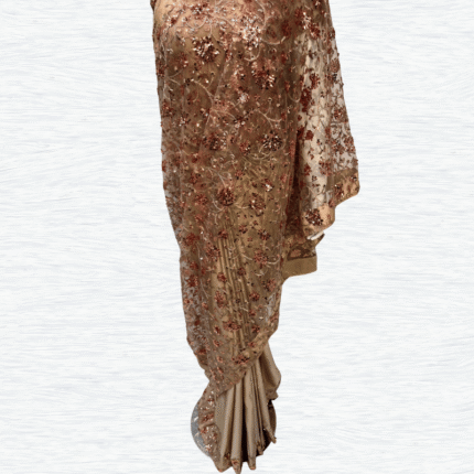 Step into star-inspired elegance with this exquisite Hania Amir saree, crafted from premium chiffon fabric. The saree is beautifully detailed with pulse and embroidery work, giving it a luxurious finish while keeping it light and flowy. Perfect for weddings, festive gatherings, and formal evenings, this saree blends modern charm with traditional artistry. Paired with a matching blouse piece, it offers the versatility to style it your way while staying effortlessly graceful.