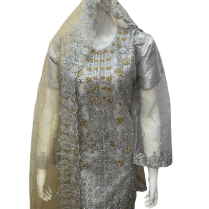 Step into refined elegance with this beautifully embroidered net saree, designed for a soft and graceful drape. Crafted on delicate net fabric with decent embroidery work, this saree strikes the perfect balance between sophistication and tradition. Paired with a matching blouse piece, it’s an ideal choice for weddings, festive gatherings, and formal events where elegance is key.